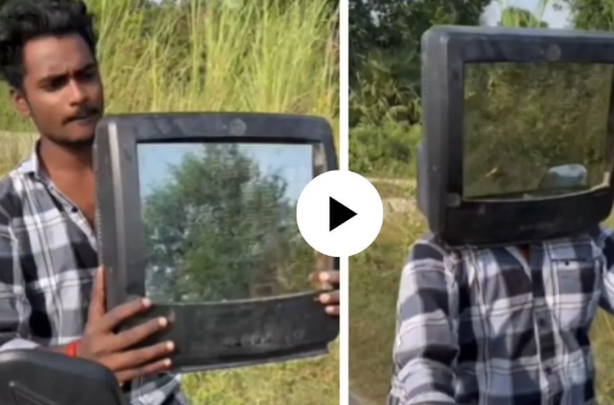सोशल मिडियावर व्हायरल होत असलेल्या या व्हिडिओमध्ये आपण पाहू शकता यात एक बाईकस्वार आपल्या बाईकवर बसलेला दिसत आहे. यावेळी त्याने त्याच्या हातात एक टीव्ही पकडली असून तो फार निरखून या बाईकला पाहत असतो. आपल्याला काही कळेल याआधीच तरुण ही टीव्ही एका हेल्मेटप्रमाणे आपल्या डोक्यावर सजवतो आणि आपली बाईक घेऊन तिथून निघून जातो. त्याचा हा अनोखा जुगाड पाहून लोक आता यावर आश्चर्य व्यक्त करत आहेत. तरुणाला हेल्मेट मिळालं नसाव, म्हणून त्याने टीव्हीलाच आपले हेल्मेट बनवले(desi jugaad) अशा मिश्किल प्रतिक्रियाही व्हिडिओला मिळत आहेत. तर तरुणाने हे नक्की केले कसे असा प्रश्नही काहींच्या मनात संभ्रम निर्माण करत आहे. दरम्यान तरुणाचा हा प्रकार हटके असला तरी खऱ्या आयुष्यात असं करणं अनेक दुर्घटनांना आमंत्रण देऊ शकतं, यामुळे अपघात होण्याची दाट शक्यता वर्तवली जाऊ शकते.