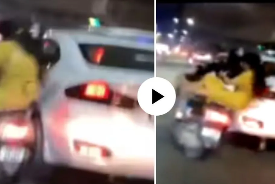 व्हायरल होत असलेल्या व्हिडिओ तुम्ही पाहू शकता की, एक दुचाकीस्वार रस्त्याने जात आहे. त्याच्या हेल्मेटवरील कॅमेरात रस्त्यावरचजे दृश्य कैद होत आहे. याच वेळी रस्त्यावर भरपूर रहदारी आहे. तसेच एक कार वेगाने जात आहे. कार अचानक एका स्टूकरवर असलेल्या कपलला जोरदार धडक देते(video). यामुळे कपल जोदरात आदळते. मागे बसलेली महिला फरपटत जाते. धक्कादायक म्हणजे धडक दिल्यानंतर कार चालक न थांबाता तिथून पळ काढतो. सध्या या थरारक आणि संतापजनक अपघाताचा व्हिडिओ सोशल मीडियावर तुफान व्हायरल होत आहे.
