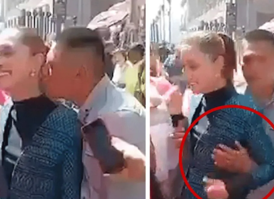 Mexican President Claudia Sheinbaum gets groped by a strange man in Mexico City on Tuesday.