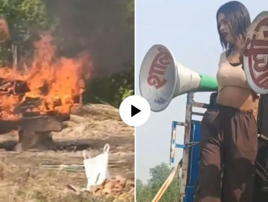 व्हायरल होत असलेल्या व्हिडिओत तुम्ही पाहू शकता की, एक स्मशानभूमीत चिता जळत आहे. तिथे काही लोक उभे आहेत. याच वेळी एका ट्रक्टरवर डीजे साउड उभारण्यात आला आहे. एक तरुणी देखील या ट्रॅक्टरवर उभी राहिली आहे. ती डीजेच्या गाण्यावर नाचत आहे. तिथून जाणारे लोक तिला असे पाहून आश्चर्यचकित झाले आहे. असे वाटत आहे की कोणाच्या लग्नाची पार्टी सुरु आहे आणि तरुणी डान्स करत आहे. हा व्हिडिओ पाहून अनेकांना धक्का बसला आहे.