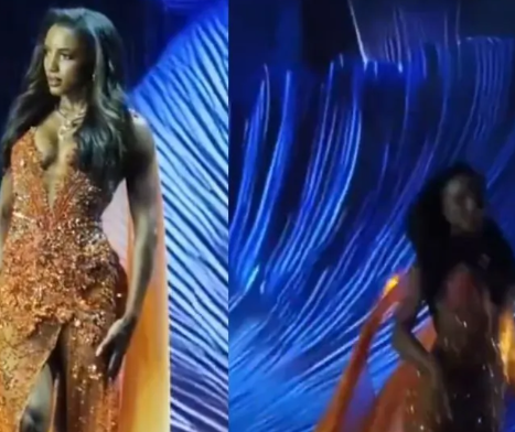 Miss Universe Jamaica, classically trained in singing and piano, but apparently didn't learn how to walk without falling off the stage 👀