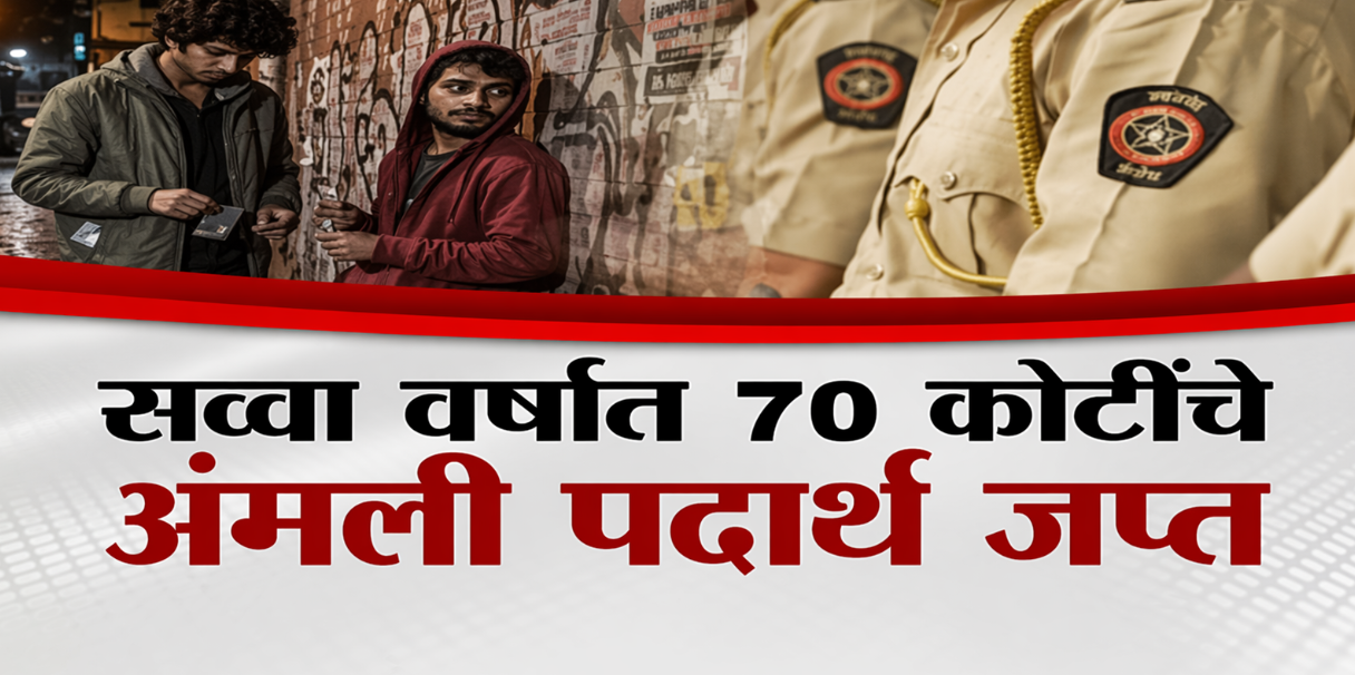 गेल्या सव्वा वर्षातील पोलिसांच्या कारवाईकडे पाहिल्यास परिस्थिती किती भीषण आहे हे स्पष्ट होते. या काळात तब्बल 924 जणांना अटक करण्यात आली असून हजारो किलो गांजा आणि अफू जप्त करण्यात आले आहे. एमडी ड्रग्जसारख्या घातक पदार्थांचाही साठा पोलिसांच्या हाती लागला असून एकूण मुद्देमालाची किंमत सुमारे 68 कोटी रुपयांपर्यंत पोहोचली आहे. ही आकडेवारी केवळ गुन्हेगारीचे प्रमाणच नव्हे तर तरुणांमध्ये वाढणाऱ्या व्यसनाधीनतेचेही गंभीर चित्र उभे करते.