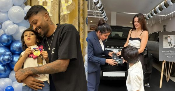 खेळण्याच्या वयात असलेल्या अगस्त्यसाठी तब्बल सुमारे 4 कोटी (gift)रुपये किमतीची लँड रोव्हर डिफेंडर टॉप मॉडेल कार खरेदी करण्यात आल्याचे सांगितले जात आहे. ही गाडी मुंबईतील नवनीत मोटर्स येथून घेण्यात आली. कार डिलिव्हरीसाठी अगस्त्य आई नताशासोबत शोरूममध्ये उपस्थित होता. यावेळी गाडीच्या मागील बाजूस ‘पापा टू अगस्त्य’ अशी वेलकम नोट लिहिलेली दिसली. या संपूर्ण घटनेचे काही फोटो सोशल मीडियावर मोठ्या प्रमाणात व्हायरल होत आहेत.
